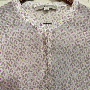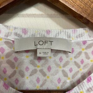 LOFT Womens White Geometric Floral Button Up Ribbed Cuff 3/4 Sleeve Semi Cropped Cardigan Sweater Medium. NOTE: some wash wear. Measurements Shoulder to Shoulder: 15" Underarm to underarm: 19" Length: 22" Sleeve: 20" Offers always welcome! Measurements are approximations taken while hanging