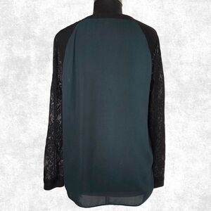 LOFT Women’s XL Hunter Green Lace Sleeve Blouse – Raglan Sheer Black Top