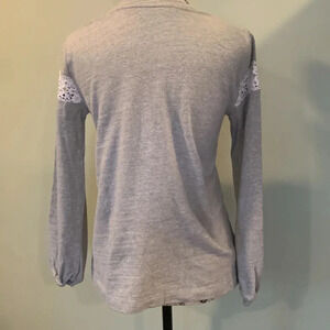 LOFT Women’s XS Extra Small Lace Trimmed Gray Lightweight Cotton Sweatshirt Top