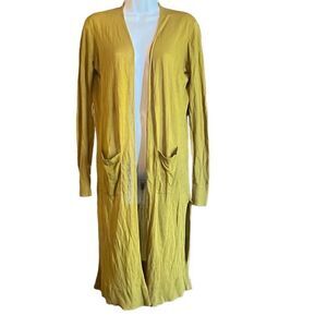 LOFT Womens XS Green Oversized Open Front Pockets Lightweight Tunic Cardigan