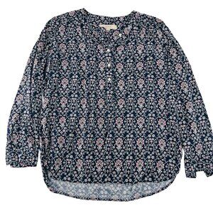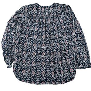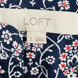 LOFT Women's size Small Pullover Blouse Long Sleeves Rayon lightweight Career Black Red Floral