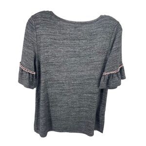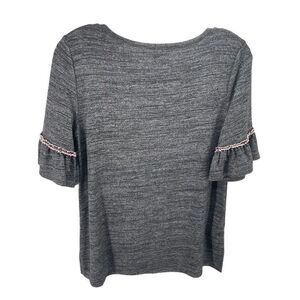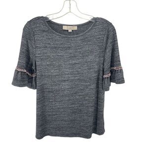 LOFT Womens Ruffle Sleeve Blouse Top Stretch Scoop Neck Pullover Gray XS
