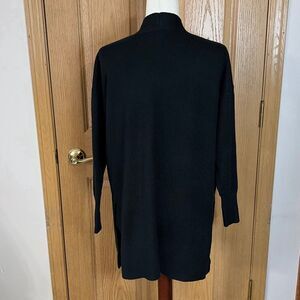LOFT cardigan, LOFT sweater, open front cardigan, black cardigan, longline cardigan, ribbed knit sweater, women’s cardigan, minimalist sweater, layering cardigan, workwear cardigan, classic black sweater, side slit cardigan, LOFT size small, women’s knit sweater