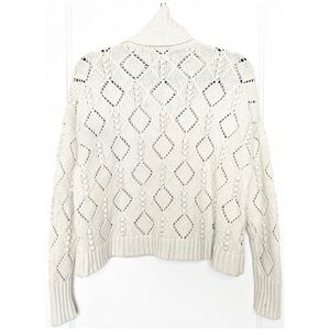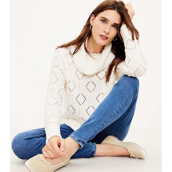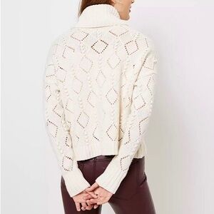 LOFT Wool Blend Turtleneck Chunky Pointelle Knit Oversized Cozy Bobble Sweater S