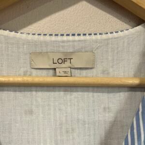 LOFT Wrap Midi Dress L Blue Eyelet 100% Cotton Ruffle Sleeves Summer Sundress
