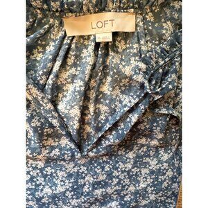 This charming blouse, adorned with delicate floral patterns, effortlessly combines comfort and style. The ruffle collar and peplum design add a touch of elegance, making it a versatile piece for various occasions. Crafted by LOFT, this blue beauty whispers stories of timeless fashion.