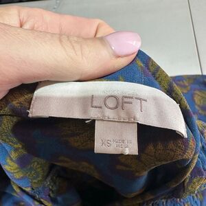 LOFT XS Floral Smocked Blouse Blue Mustard Purple Yoke Keyhole EUC Flowy Fall