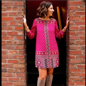 LOFT pink patterned tunic in pre-owned excellent conditions. Sleeves have elastic hem.. Can be worn as a top or a dress. See pictures for measurements.