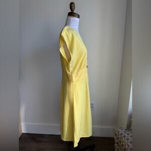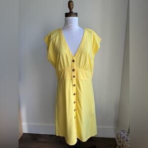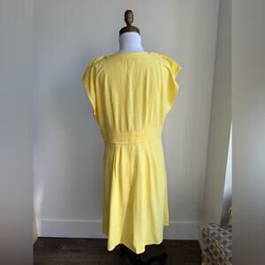 LOFT YELLOW BUTTON FLARE MINI DRESS V NECK BUTTON DOWN SIZE 8