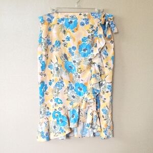 LOFT Yellow Blue Floral Ruffle Faux Wrap Skirt - Size 12
