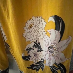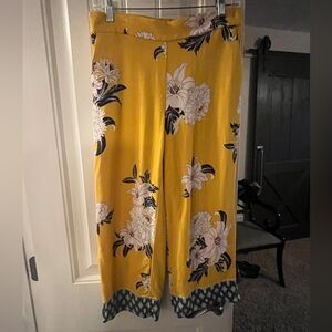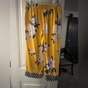LOFT Yellow Floral Mosaic Fluid Drawstring Wide Leg Palazzo Pant, Small Petite