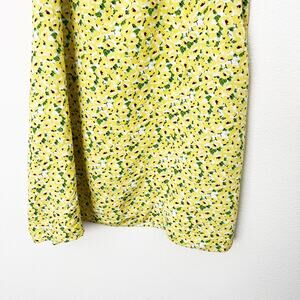 LOFT Size 14 Yellow Floral Print Linen Blend High Waist Side Slit Midi Skirt