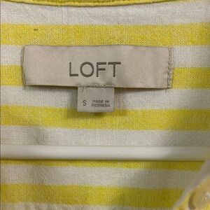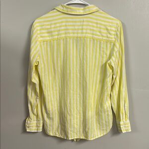 Chic button-down shirt with yellow and white stripes. Features a classic collar and long sleeves. Perfect for casual or office wear.