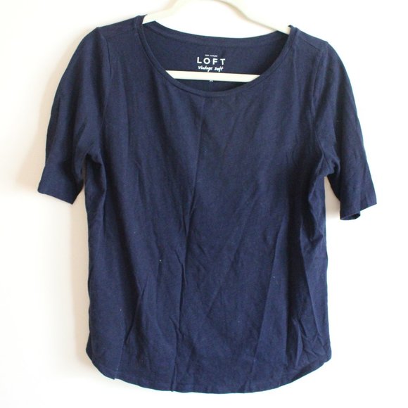 LOFT basic navy semi boat neck half sleeve tee. Soft material, great basic!