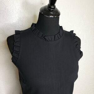 LOFT black sleeveless ruffle trim dress. High collar with ruffle trim. Sleeveless with ruffle trim. Zips in back. Fully lined. Size 4. New with tags NWT.