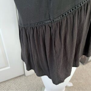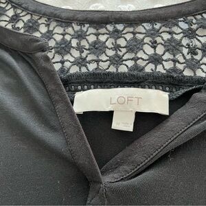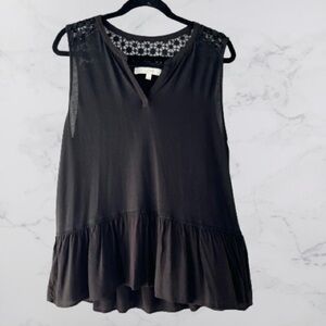 LOFT black sleeveless top with lace at the shoulder and ruffled hem. Medium
