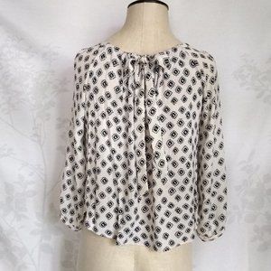 Style tags: black, white, diamonds, design, business casual, career, work, layer, professional, flowy, loose, unfitted, peasant style, boho, bohemian