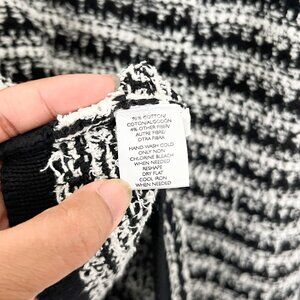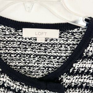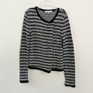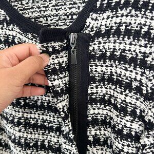 LOFT // black white striped tweed asymmetrical zipper knit zip up jacket M