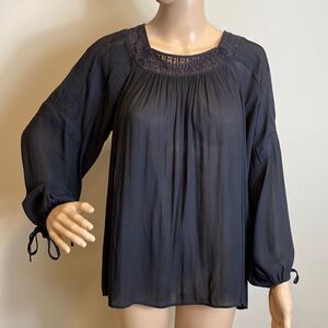 LOFT black long sleeve semi-sheer lace accent blouse top size S