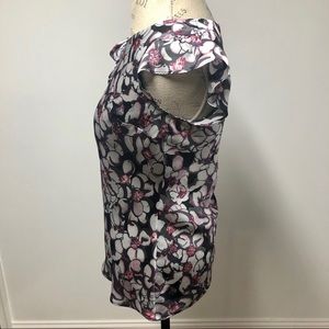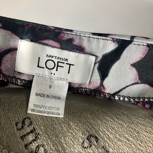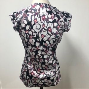 The LOFT black, white, and pink floral blouse with cap sleeves and a bow on the right shoulder. Silky material. Just like new! 🌸