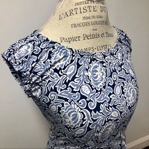 The LOFT navy blue, light blue, and white floral print blouse. Excellent condition and super cute for the summer time! 💙