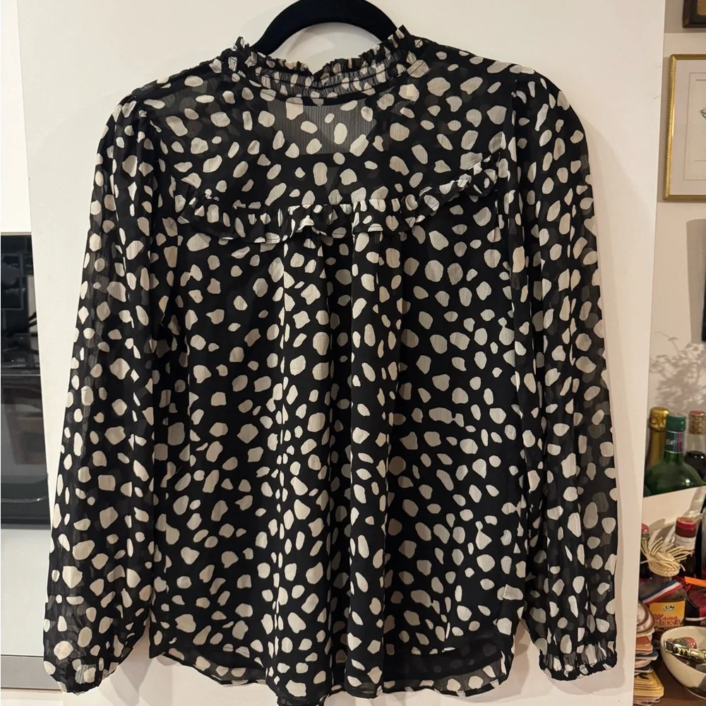 Black and white polkadot blouse from loft. Is a mock neck and the neck has a really cute ruffle. You can see it in the last picture. Size is small petite only worn two times.