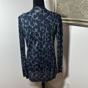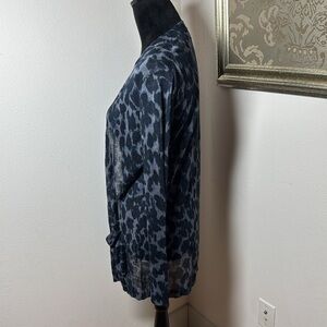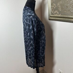 LOFT blue gray lightweight animal print open front ramie cardigan Sz S