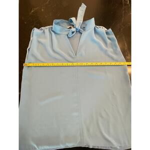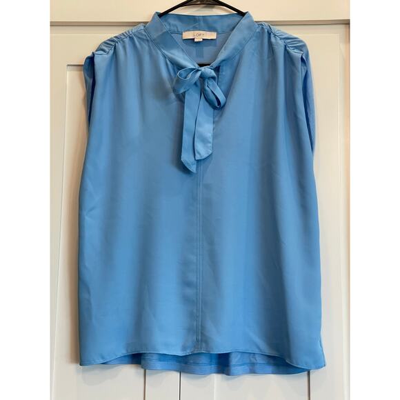 LOFT blue shirred shoulder sleeveless flowy v-neck with tie shell Med