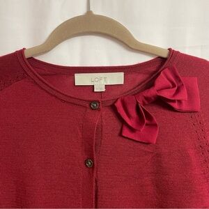 LOFT by Ann Taylor XS Red Cardigan Bow Accent Business Casual Feminine