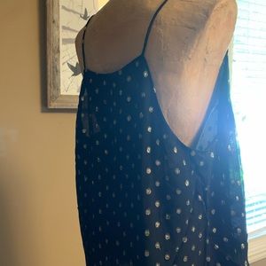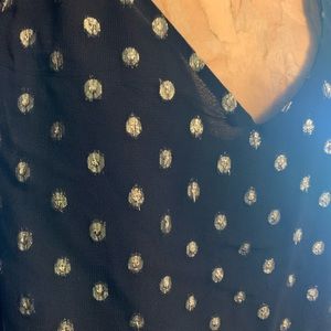 LOFT. Cami top. Can be dressed up or worn casual. Black, lined, with gold pattern. Worn once.