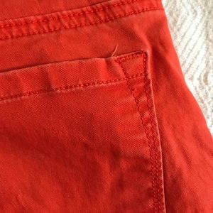 Orange capris that hit about 4” below the knee. Vintage wash around pockets and waste (see photos). Fun color pants to give your outfit a pop! LOFT modern crop cut