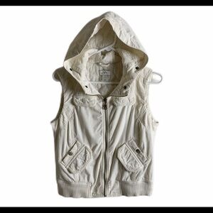 This vest is previously owned and in good condition. Inside of hood has some light staining. See photos, is minimal and can’t be seen when worn.