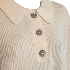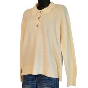 Chic cream sweater with a classic collar. Features elegant button accents. Soft and comfortable for versatile wear.
