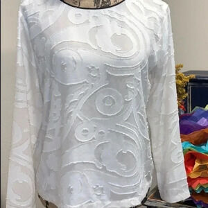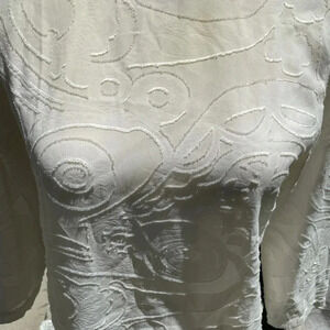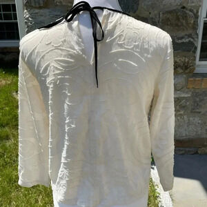 LOFT cream patterned top with black trim and tie neck back. Beautiful swirl design. Size xs. 3/4 sleeves.