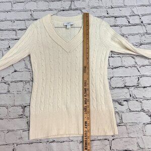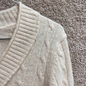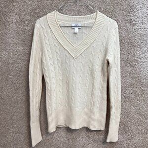 LOFT cream v-neck wool Rabbit Hair blend cable knit sweater Small