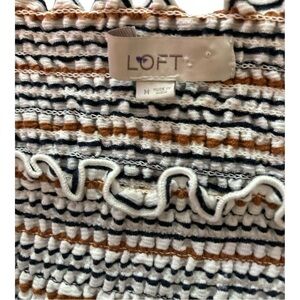 LOFT crop top, ruched elastic front and back. Full 3/4 sleeves, ruffle trim.