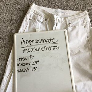 LOFT cropped white skinny jeans with double row of fraying at hem