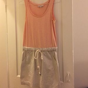 Adorable loft dress orange and white cotton top with tan skirt looking bottom. Draw strings to tie and tighten
