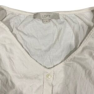 LOFT egg shell white sleeveless top, size small with a tie front and buttons.