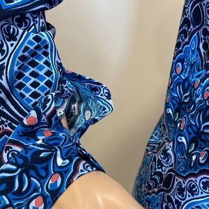 LOFT electric sapphire long sleeve baroque shift dress size XS