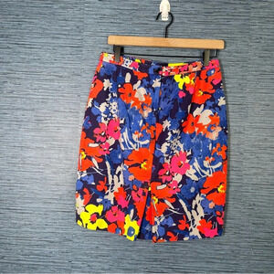 LOFT floral denim pencil skirt Petite Size 8 Floral Multicolor Blue Pink Yellow