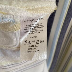 LOFT flutter sleeve blouse in stripe pattern in blues & yellow. 4 button back