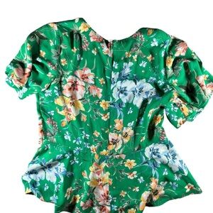 LOFT office business casual flutter sleeve green floral peplum zip-up blouse size 2