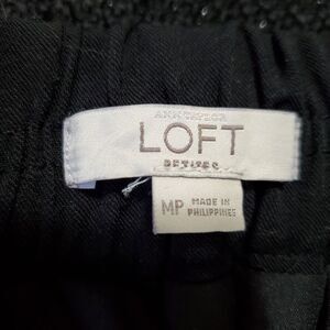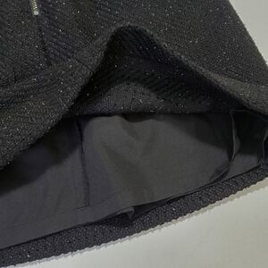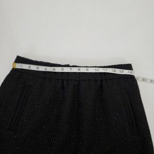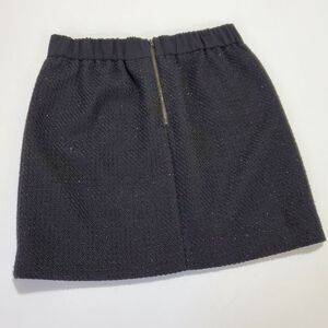 LOFT short mini style skirt that has metallic threads. The skirt has an exposed zipper in the back and seamless flat front pocket detail (not functioning pockets). Elastic at the waist, measures 14" across laying flat but has stretch. The length was measured from the waistline to the hem at 17 inches. Cute for the office and day to night for a date. Glitter look that doesn't come off in hands. 100% polyester texture tweed looks like wool. Size Medium Petite. Machine Wash Cold, Dry Flat. Fully lined. Cozy for winter. Brand new, never worn, but I took the tags off.
