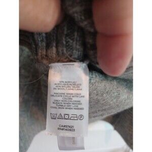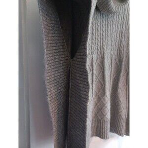 The LOFT gray cable knit poncho sweater is a cozy and versatile garment perfect for casual occasions or travel. Featuring a cowl neck and sleeveless design, this oversized sweater in size M/L offers a relaxed fit for comfortable wear. Made from a blend of acrylic, nylon, and wool, this sweater is machine washable and ideal for the winter, fall, and spring seasons. The cable-knit texture and solid gray color add a touch of style to this pullover, making it a great addition to any woman's wardrobe.