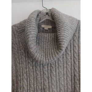 LOFT gray cable knit poncho sweater M/L oversize cowlneck sleeveless cozy