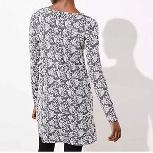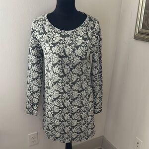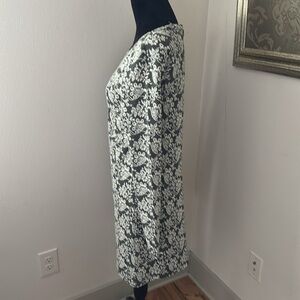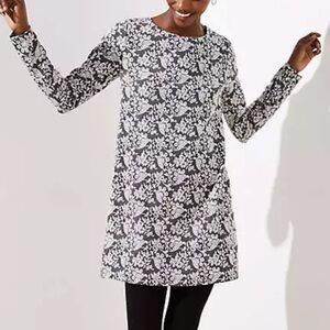 LOFT gray ivory print floral jacquard shift long sleeves dress Sz XS