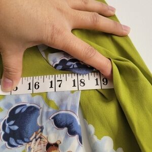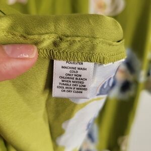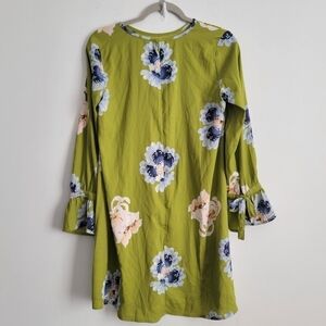 loft green floral short dress size X-Small long sleeve ruffled sleeve Zips on the back green floral