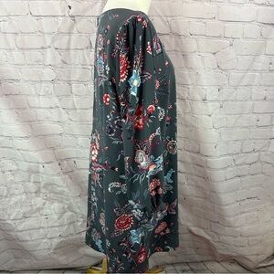 LOFT grey floral midi shift dress sz 14 classic long sleeve