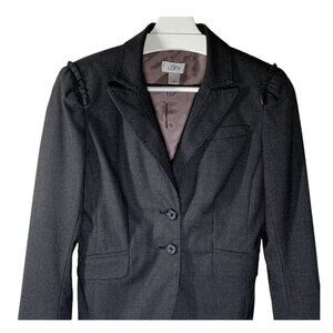 Elegant Ann Taylor LOFT blazer in subtle brown-gray houndstooth plaid. Tailored fit with double-button closure, light padding at shoulders, and fully lined interior. Classic preppy look for workwear, academic layering, or everyday sophistication. Pre-owned, great condition.